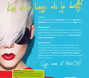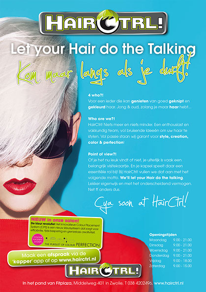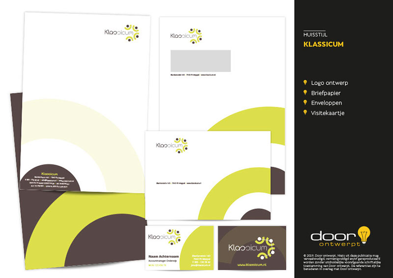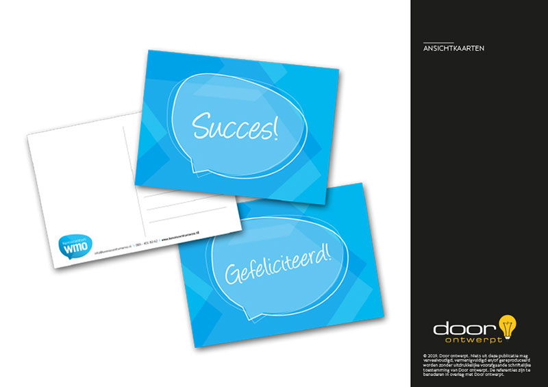 Tegelijk met het voorstel van een nieuw logo, ook een eerste opzet voor een visitekaartje en een advertentie.