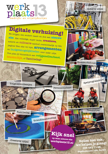 Organiseert bedrijfsuitjes, workshops, personeelsuitjes en vrijgezellenfeesten.