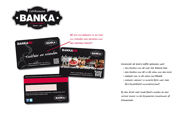 Tegelijk met het voorstel van een nieuw logo, ook een eerste opzet voor een visitekaartje en een advertentie.