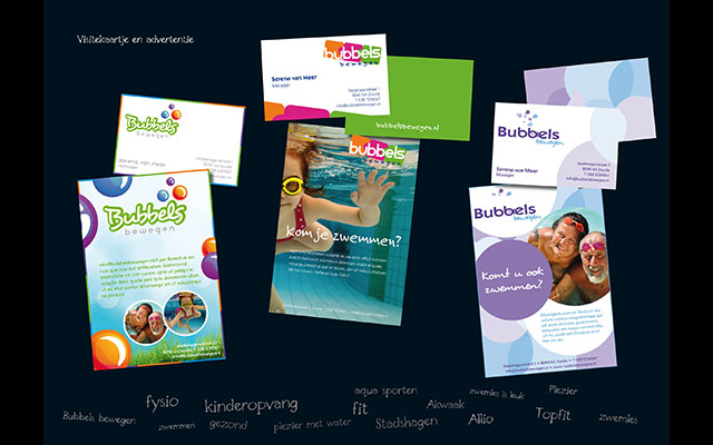 Een samenwerkingsverband van Kinderopvang, Fysio en een zwemschool te Zwolle. Het logo bevat de drie onderdelen samen in drie bubbels. Deze komen ook weer terug in de aankleding van het pand, d.m.v. ronde ramen en vloerbedekking met gekleurde cirkels.